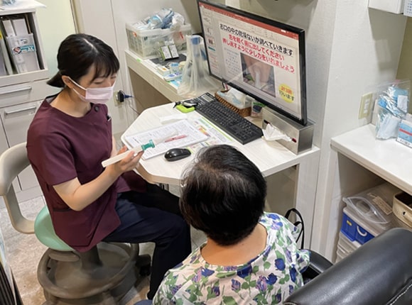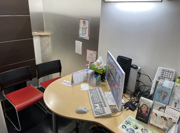 診察受付、予防歯科衛生製品のご案内、次回のご予約等を行っております。患者様相談窓口も兼ねておりますので、わからないことがあれば、気軽にご質問ください。
