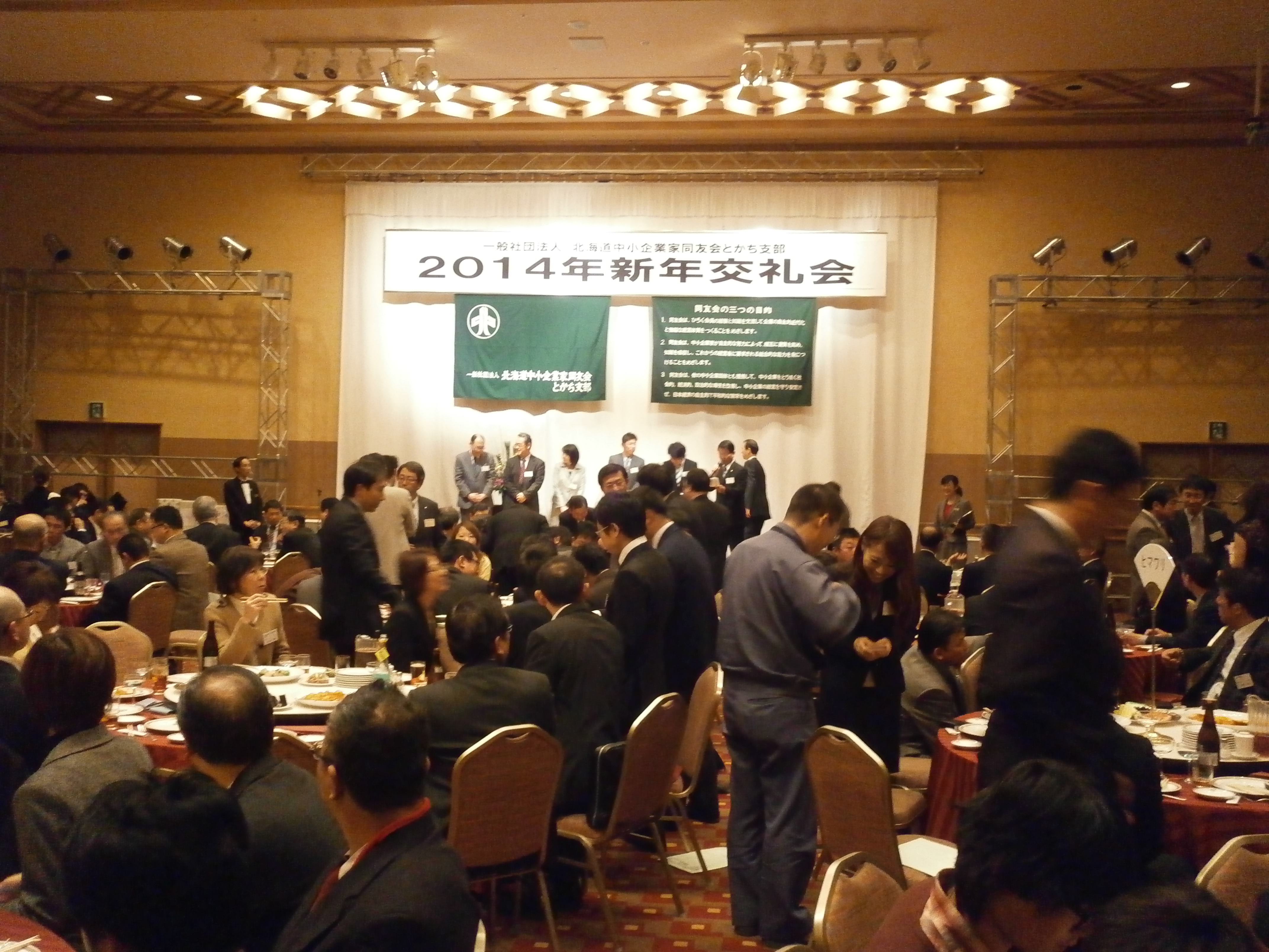 先日、北海道ホテルで中小企業同友会とかち支部新年交礼会にスタッフ6名で参加してきました。同友会に参加して、ひろく会員の経験と知識を交流して、相互に資質を高め知識を吸収し、今後、仕事面で、あるいはプライベートにおいても、何か生かしていければと考えております。