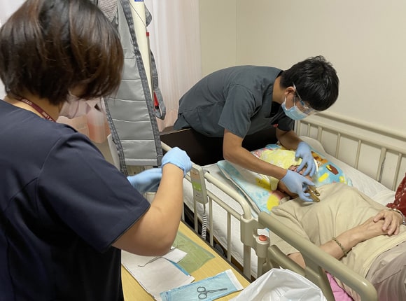 治療内容により日程を調整させていただき、専門の歯科医師と歯科衛生士で訪問します。
